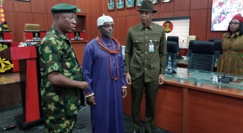 As a follow up to the visit to the CDC, Senator Dafinone accompanied by Senator Nwoko, also visited the Nigerian Army Intelligence Corps after which they were granted audience with the traditional ruler.