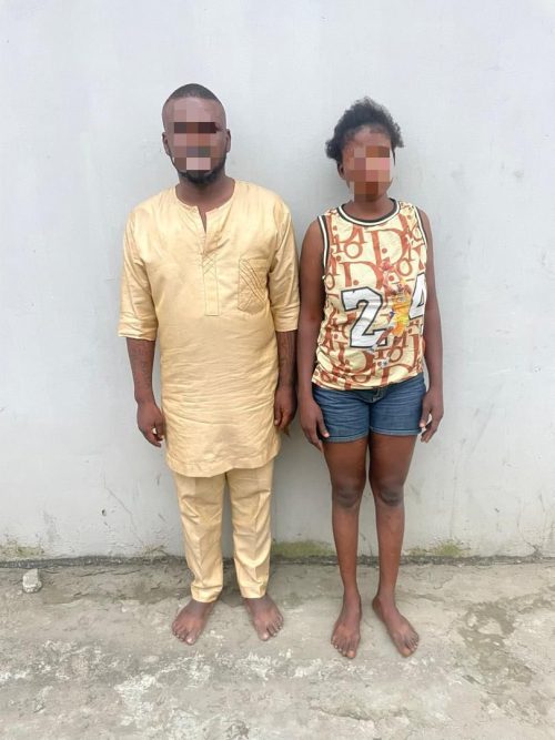 “This morning at about 1am, responding to a distress call about the presence of armed men on Agoro Street, Mushin, our tactical team based in Surulere swiftly moved in and arrested Sherrif Mustapha ‘m’ aged 42 and Suturat Lateef ‘f’ aged 28 while one other escaped.
