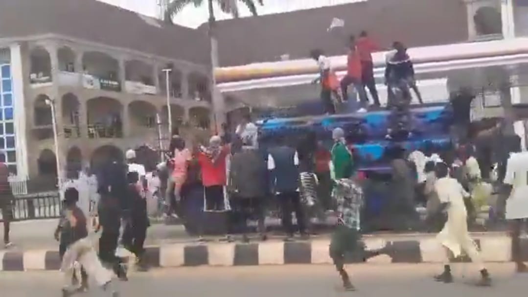 Hoodlums in Kaduna have reportedly hijacked a police armored vehicle amid ongoing protests against economic hardship, bad governance, and hunger.