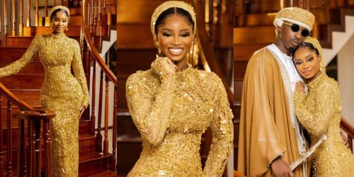 On her Instagram page, Priscilla Ojo shared beautiful photos of herself adorned in a gold outfit for her traditional wedding.